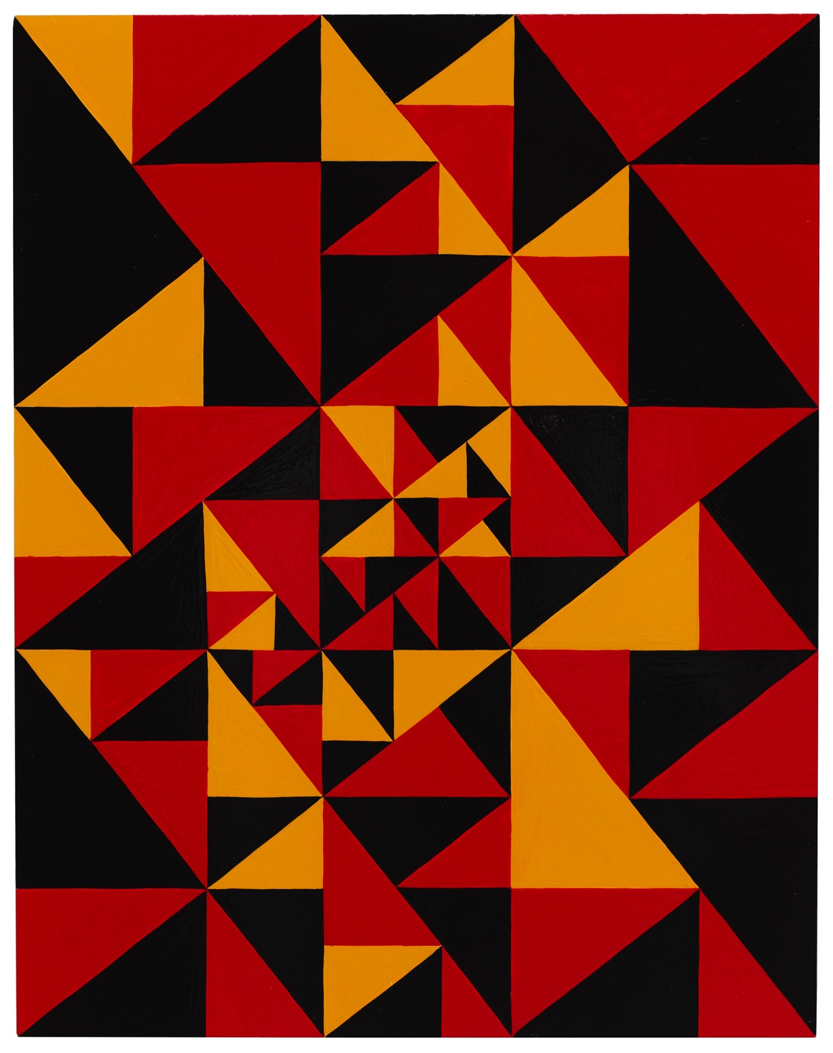 James Siena employs the mathematical laws of algorithms to predetermine the shape, color, and placement of his forms, which he calls “image-structures.” His tight moves feel like Escher tessellations, but have recently found release in figurative experimen-tation as seen in the outline of a woman in Flat Red Girl, or the suggestion of a face in Decaying Old Man.