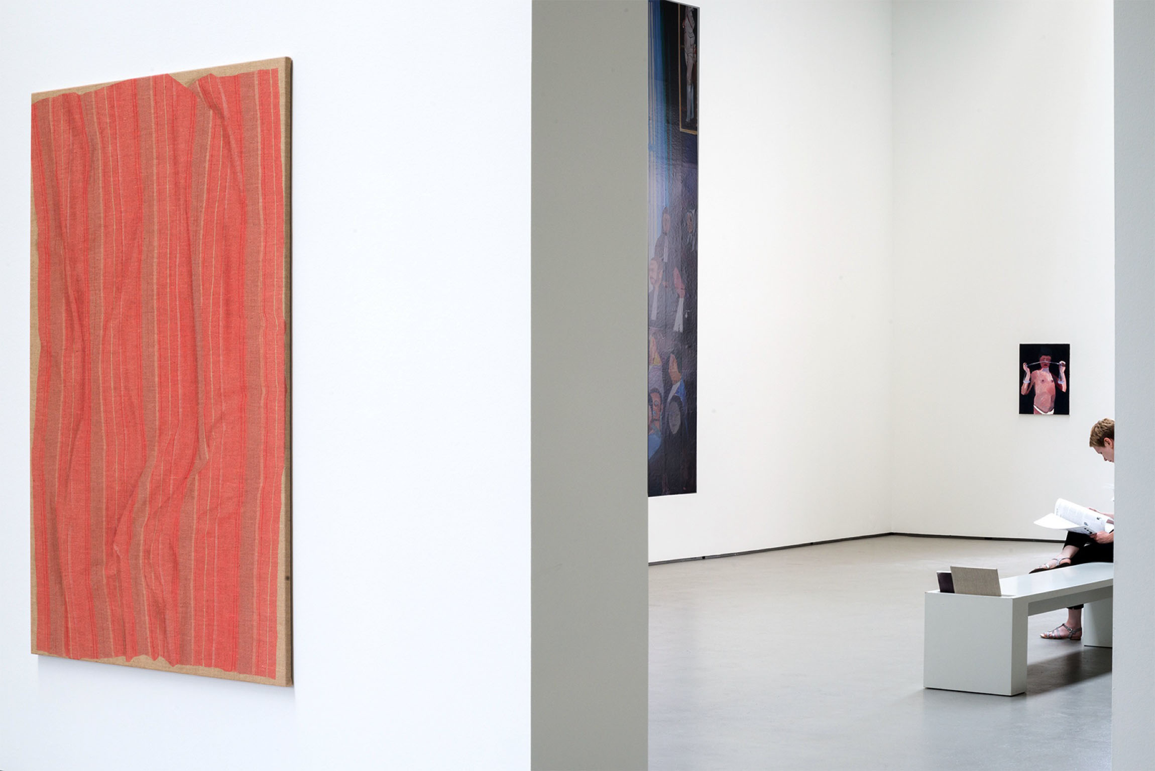 Verhoeven, too, treats the figure recursively, as a thing in endless repetition; it is a banal assembly of parts but with an intrinsic, already unfixed mutability. In Verhoeven’s paintings the subject hovers, portentously, threateningly, on the edge of total transposition. One thing threatens to become another, leaving the viewer expectant, fearful, roused. Verhoeven’s paintings concentrate the mind. The spectator, like her subjects, becomes unmoored in her clever and provocative plays of representation. The grand reconstruction she has devised for this exhibition of her 2015 painting Hoge Raad, which depicts the densely crowded interior of Holland’s Supreme Court (where the painting is hung and thus rarely seen in person), performs a profound act of uncertain, ambiguous return, repeating the motifs of recursiveness and distilled, secondary representation that so animate the work of Appel and Margolis. Her replication of the painting leaf by leaf from the more widely accessible book format sees her revisiting and perhaps altering one of the critical themes of the original work. In reconstructing the painting for us, Verhoeven brings forth another powerful aspect of the body politic and the play of representation (political and otherwise) that lie at the heart of the Hoge Raad.